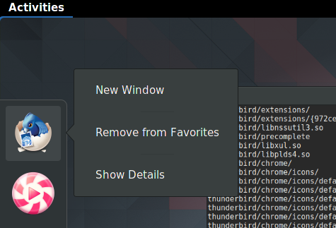 Problem 2: If I added Firefox to my Favorites (the dock on the left where openened and manually added applications sit), I would get a duplicated menu entry.