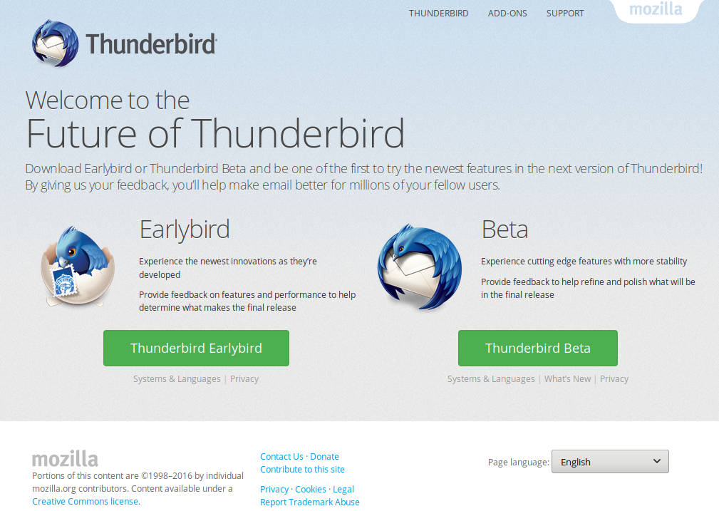 Go to the Thunderbird Release Channel and grab the package for Earlybird (or the the Beta, if you choose):